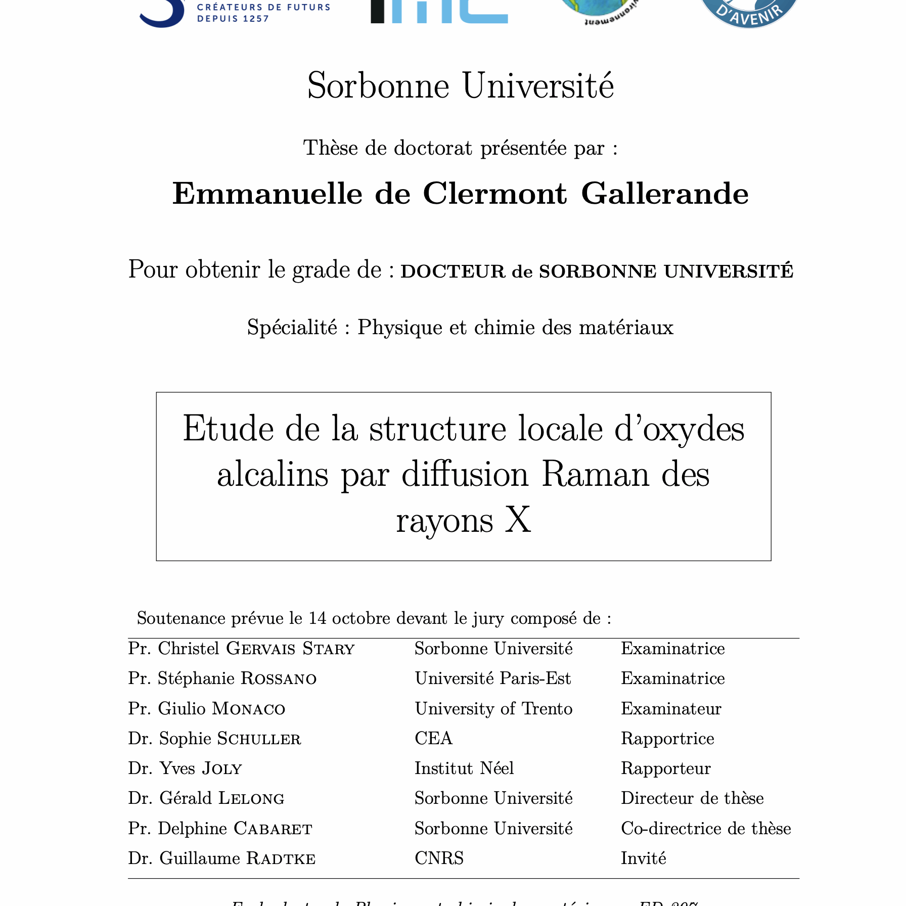 Emmanuelle de Clermont Gallerandesoutenance le 14/10/2020 à 14:00Université Sorbonne Université