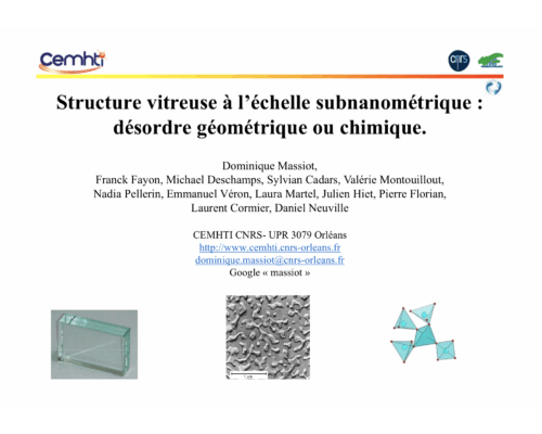 Structure vitreuse à l’échelle subnanométrique : désordre géométrique ou chimique – D. Massiot