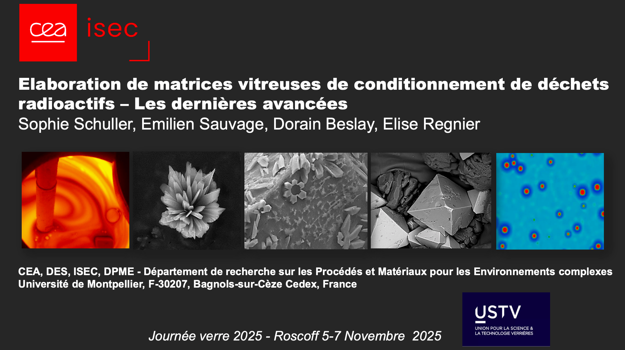 Elaboration de matrices vitreuses de conditionnement de déchets radioactifs – Les dernières avancées - S. Schuller