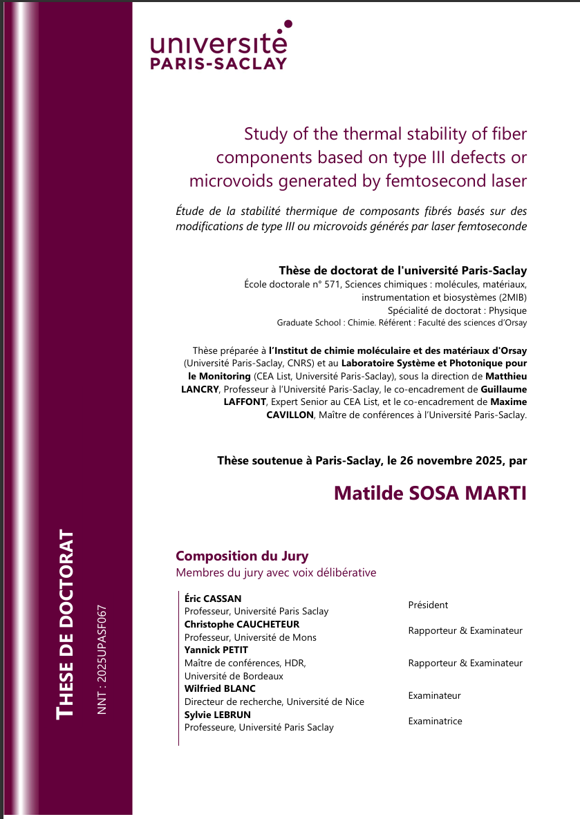 Institut de chimie moléculaire et des matériaux d'Orsay (Université Paris-Saclay, CNRS) et au Laboratoire Système et Photonique pour le Monitoring (CEA List, Université Paris-Saclay